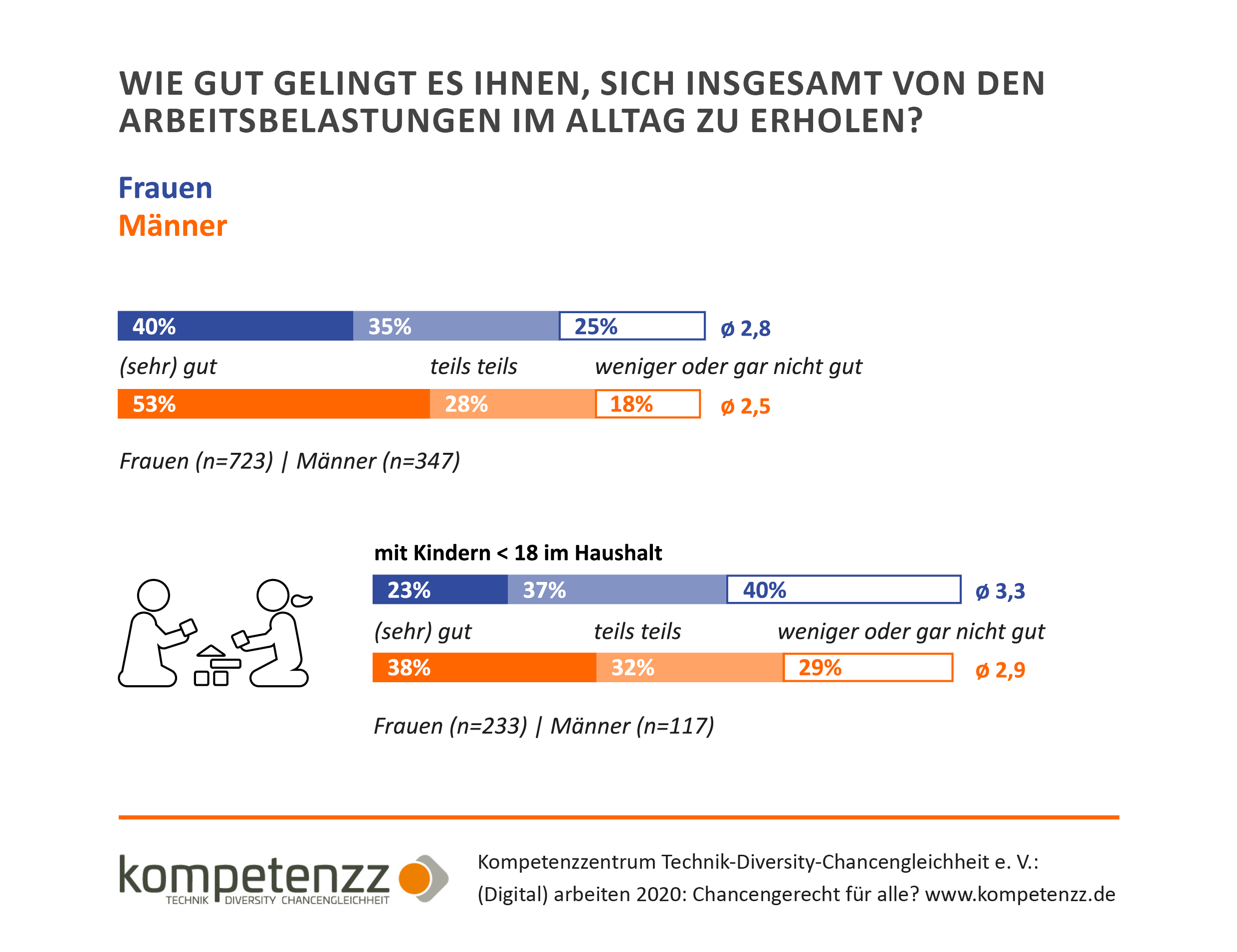 Unsere Ergebnisse zeigen: Das Potenzial in Form der Orientierung an einem paritätischen Ideal ist vorhanden, jedoch sind effektive Weichenstellungen noch zu selten Teil des gesellschaftlichen und betrieblichen Alltags. Chancen liegen in der Flexibilisierung der Erwerbstätigkeit – unter bestimmten Bedingungen: Transparente und verhandelbare Regeln der Arbeit im Homeoffice sind zentral.