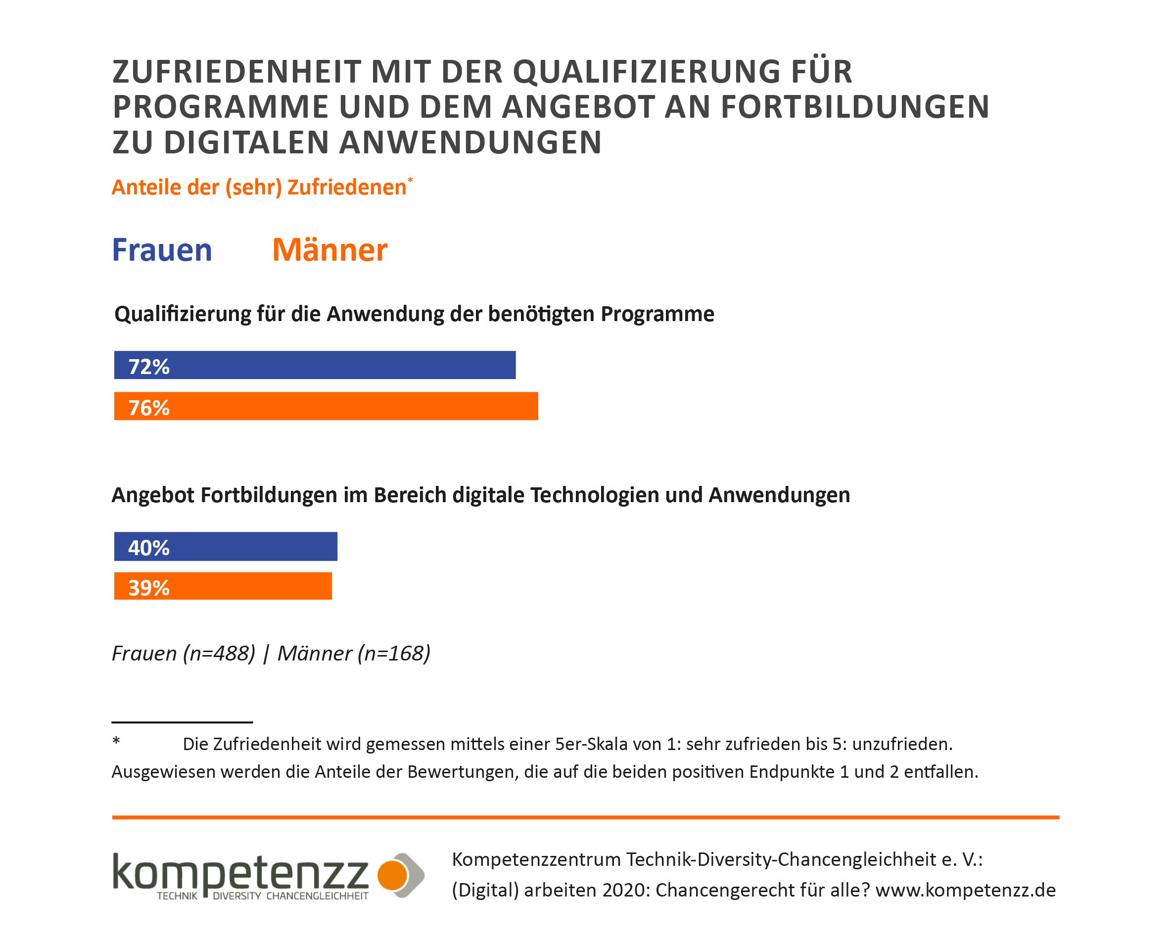 Unsere Ergebnisse zeigen: Die Zufriedenheit mit Angeboten an Fortbildungen im Bereich digitale Technologien und Anwendungen unter Beschäftigten im Homeoffice ist gering.